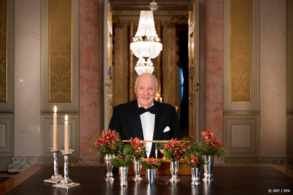 Noorse koninklijke familie zet kerstboom bij paleis in Oslo Vorsten , Winter has descended on the norwegian capital city oslo.